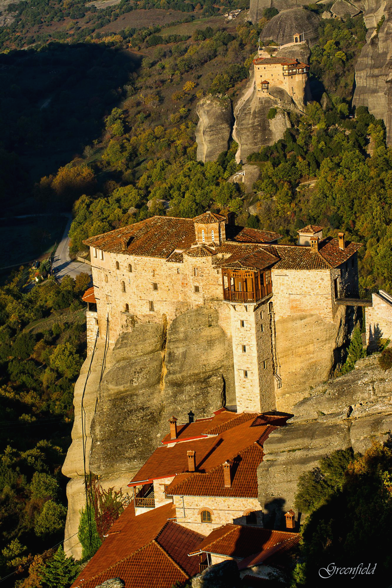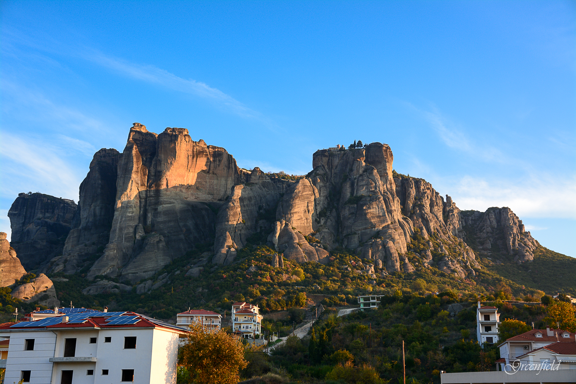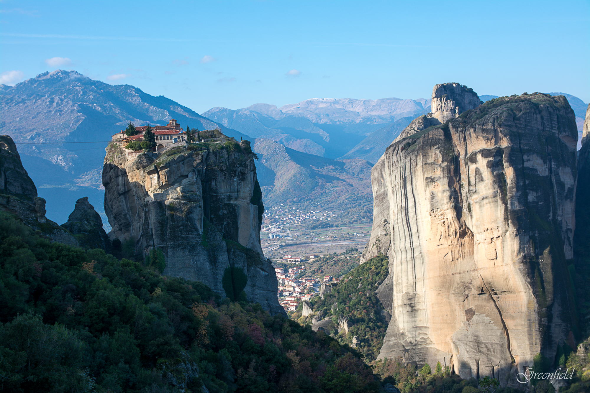 깎아지른 절벽 위의 세상과 절벽 아래 메테오라 마을이 절묘하게 어우러져 환상적인 풍경을 보여줍니다.