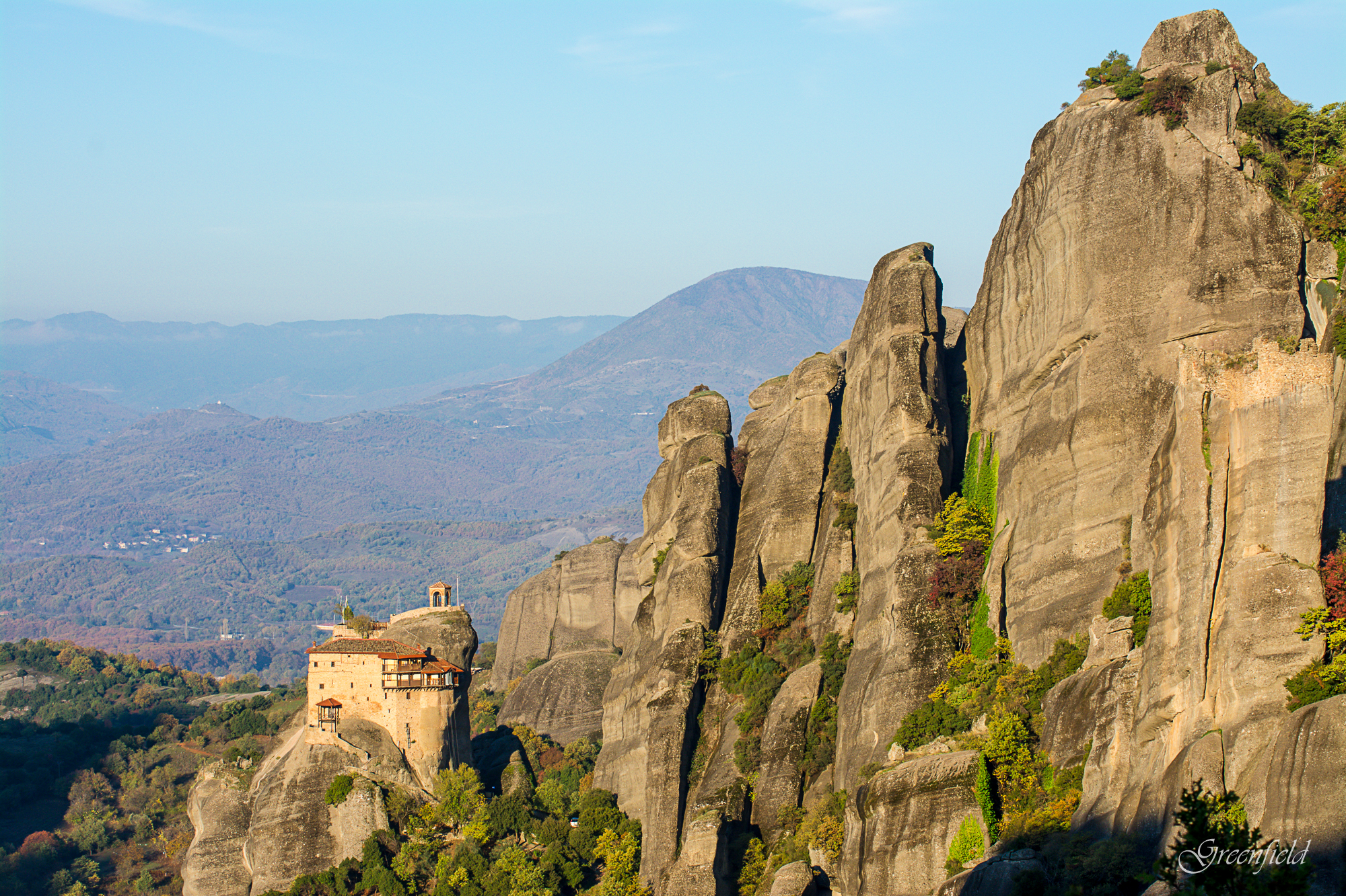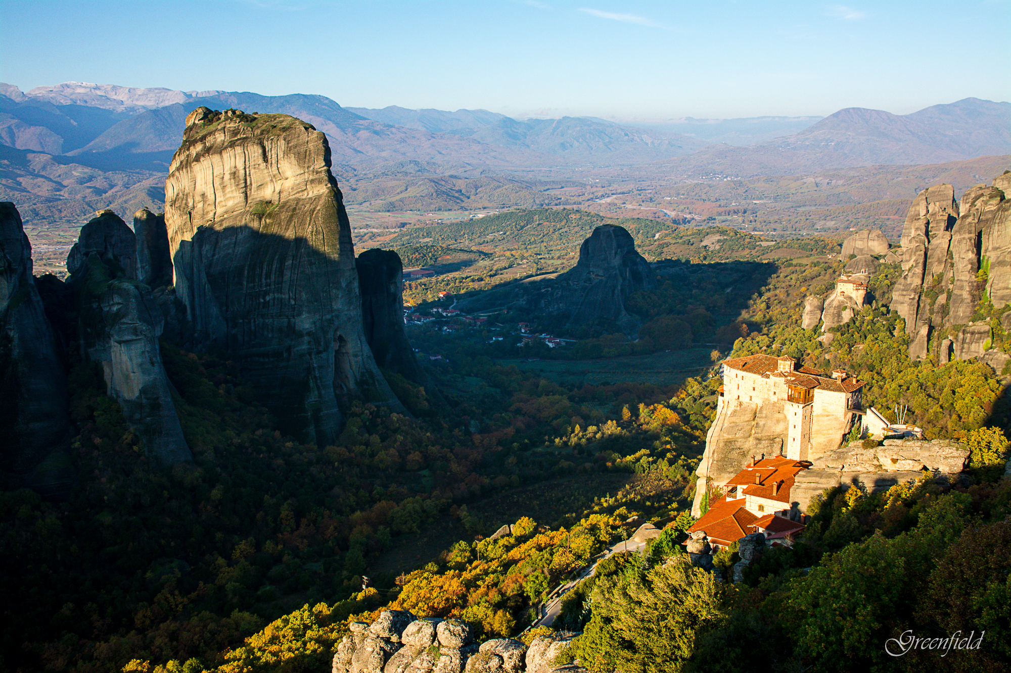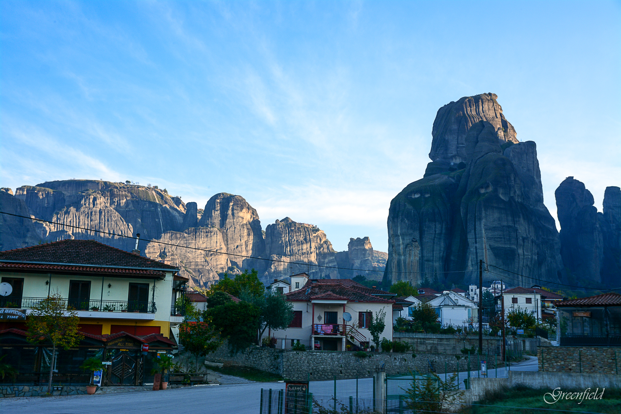 깎아지른 절벽 위의 세상과 절벽 아래 메테오라 마을이 절묘하게 어우러져 환상적인 풍경을 보여줍니다.