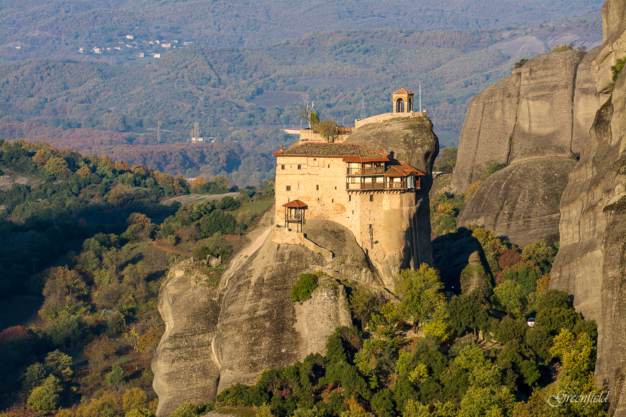 루사누의 성 바바라 수도원(Holy Monastery of Roussanou, St. Barbara)은 1545년에 에피루스에서 온 두 형제들, 조아사프와 막시모스에 의해 설립되었습니다. 이 두 형제는 그 이전에 존재하던 교회의 폐허 위에 이 수도원을 지었다고 하네요. 1988년에 이 수도원은 수녀원으로 바뀌었는데, 이 수도원에 가려면 다른 봉우리에서 작은 다리를 건너가야 합니다. 이 수도원의 교회는 뛰어난 예술성을 지닌 벽화와 목재 이콘들, 패널 이콘들과 이콘 스탠드 등으로 장식되어 있고, 오전 9시부터 1시가지, 오후 3:30부터 6시까지 관람이 가능하며 수요일에는 휴관입니다.