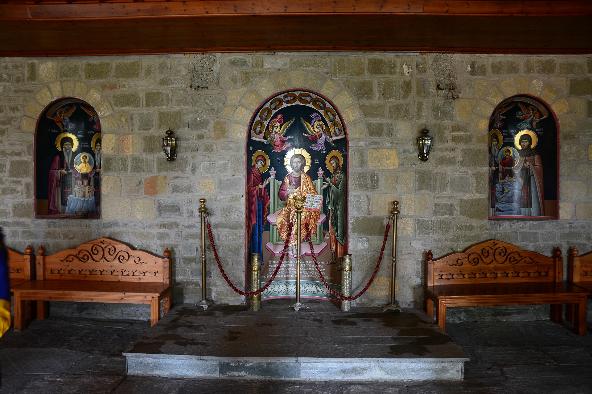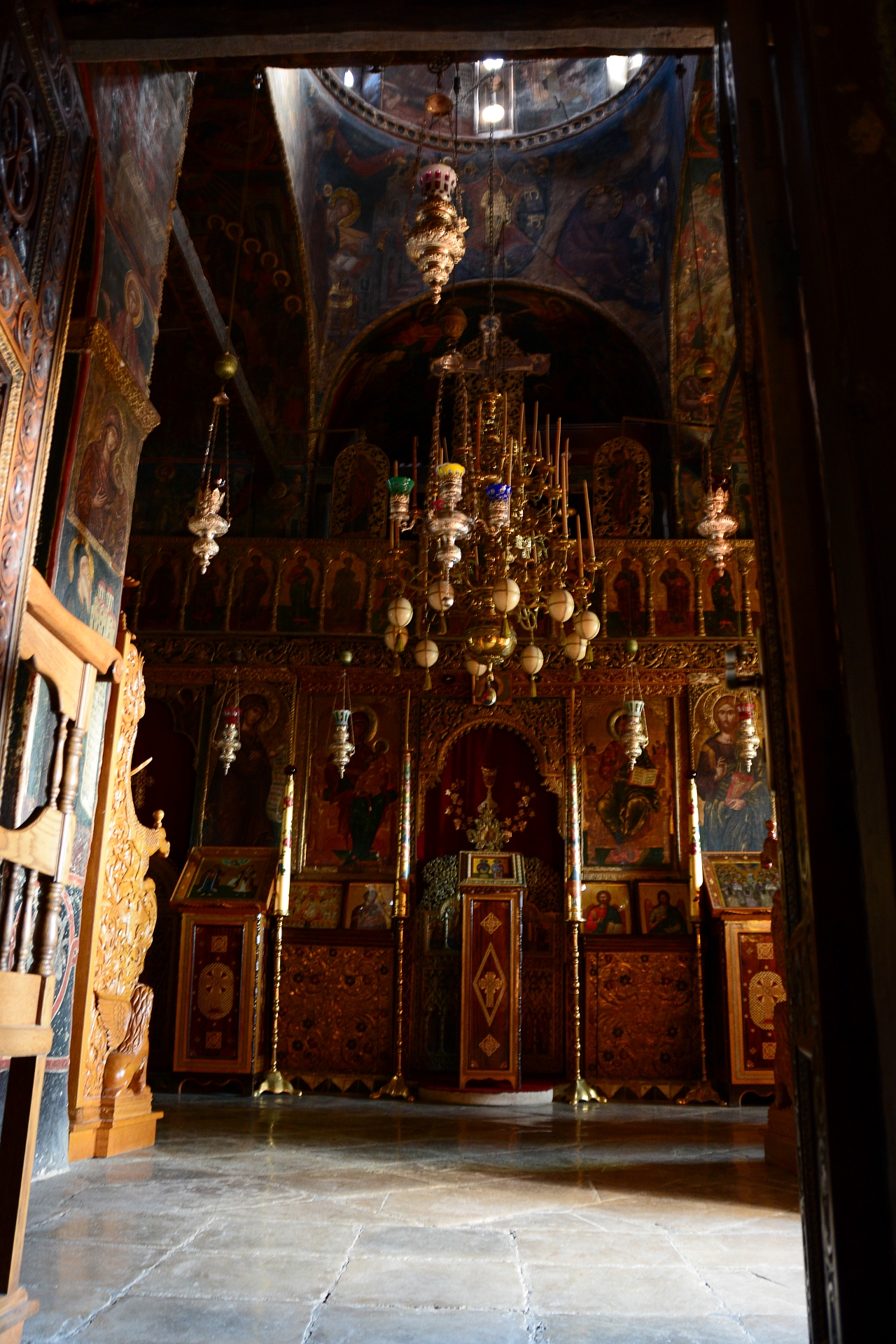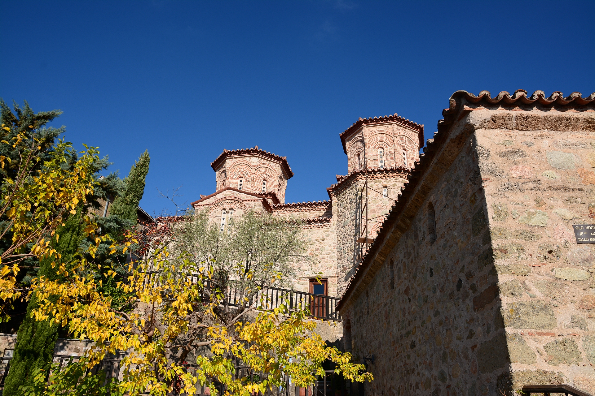앞에 보이는 루사누의 성 바바라 수도원 뒤쪽으로 작게 보이는 아기오스 니콜라오스 아나파프사스 수도원(Holy Monastery of St. Nicholas Anapafsas)은 16세기에 라리싸의 대주교 디오니시오스가 설립하였으며 오래된 후원자의 이름을 따서 명명되었구요, 카톨이콘은 크레타의 저명한 이콘제작가인 테오파니스 바타스-스트렐리차스가 그린 벽화 안에 장식되어 있습니다. 수도원의 개관시간은 매일 오전 9시부터 오후 6시까지입니다.