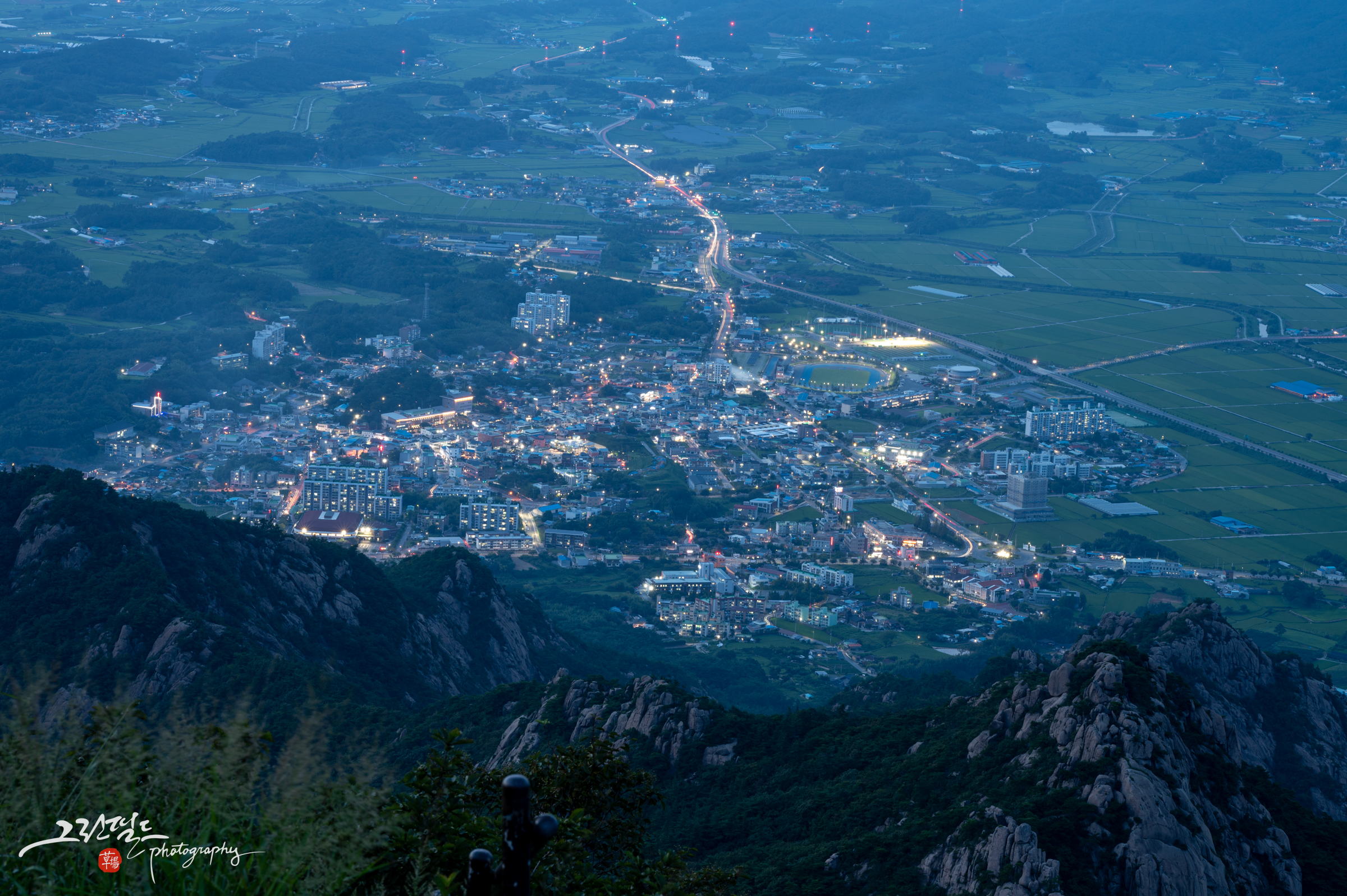 마지막으로 불빛이 점점 진해지는 영암읍내 풍경을 담았습니다.