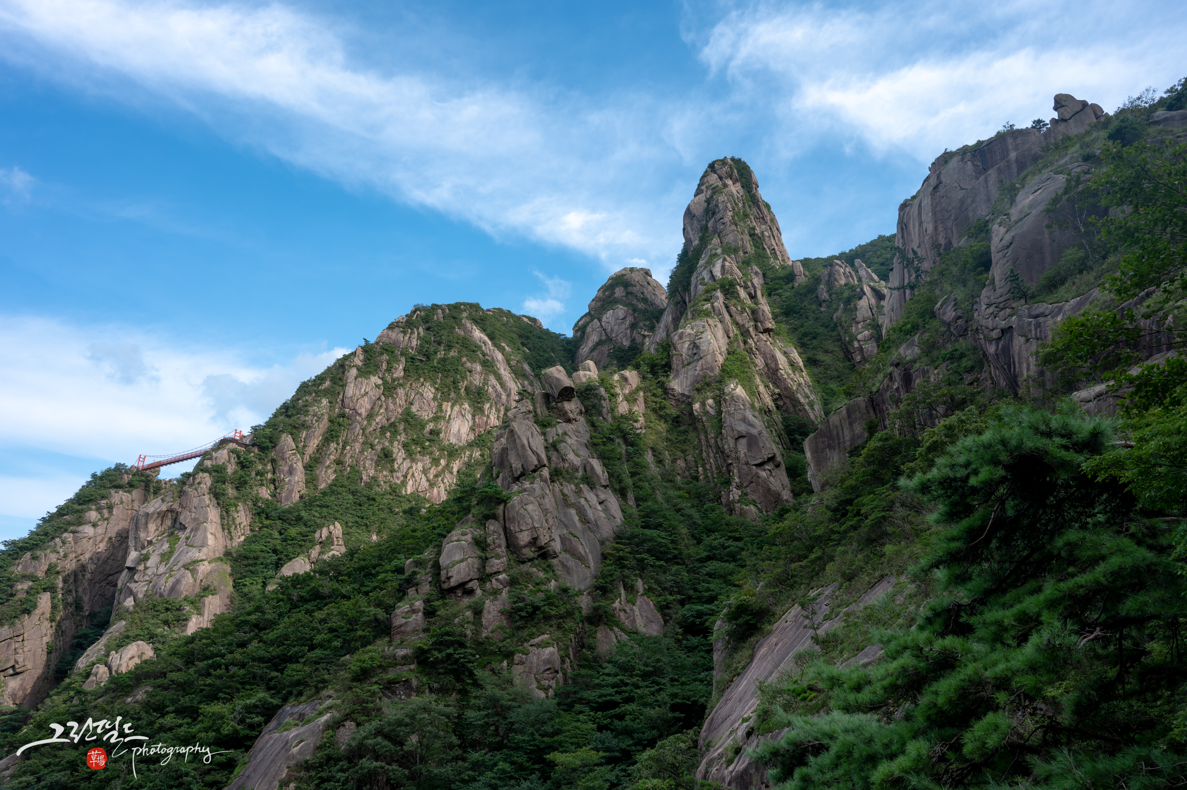 장쾌하고 시원한 풍경, 우뚝우뚝 솟아오른 바위와 능선의 조화에 감탄을 금치 못합니다.