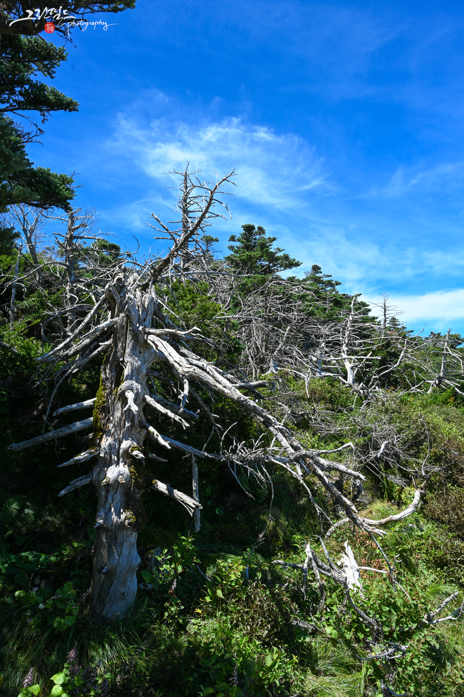 사선구도의 8부 능선과 고사목,