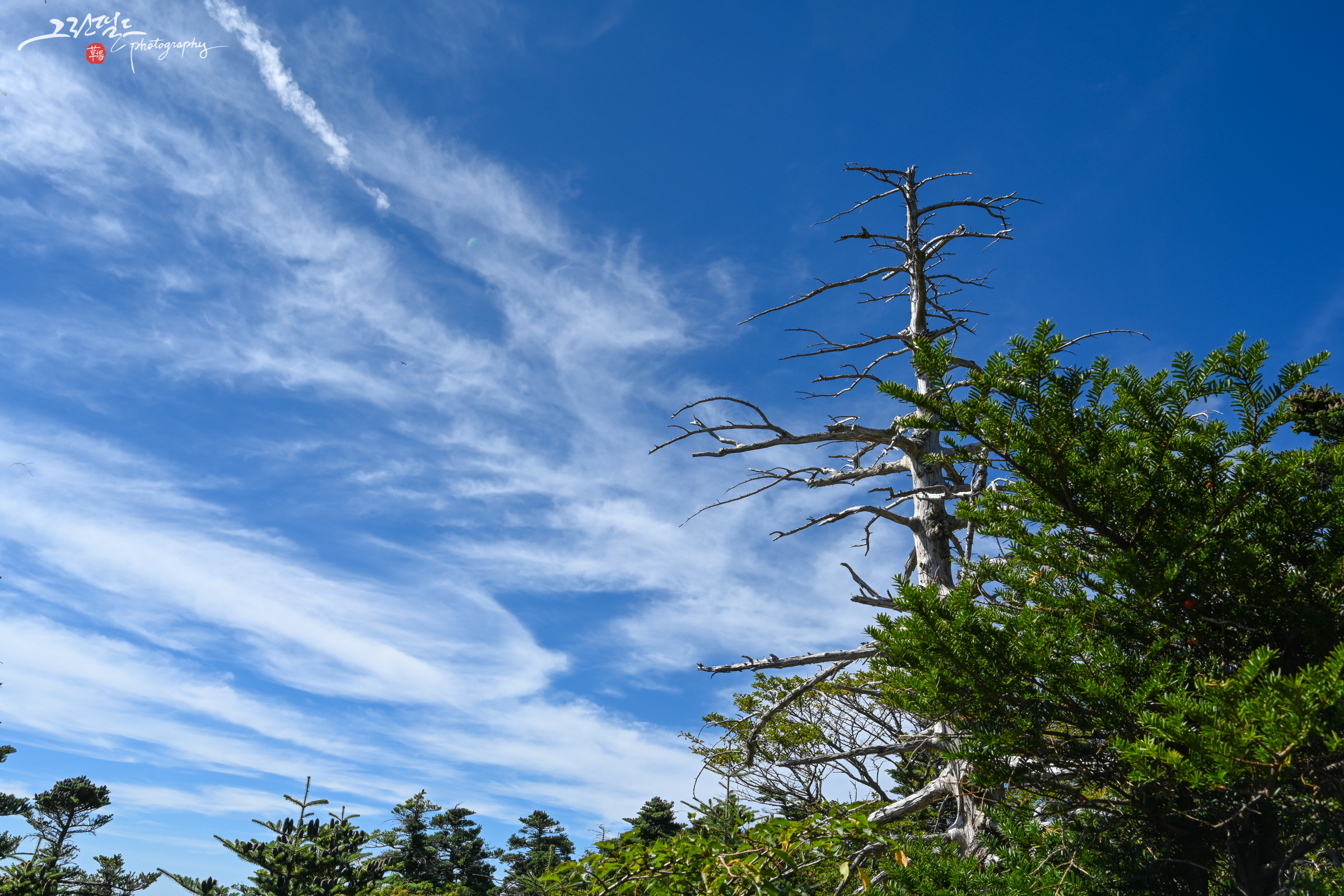 밋밋한 사진에 우측상단의 고사목과