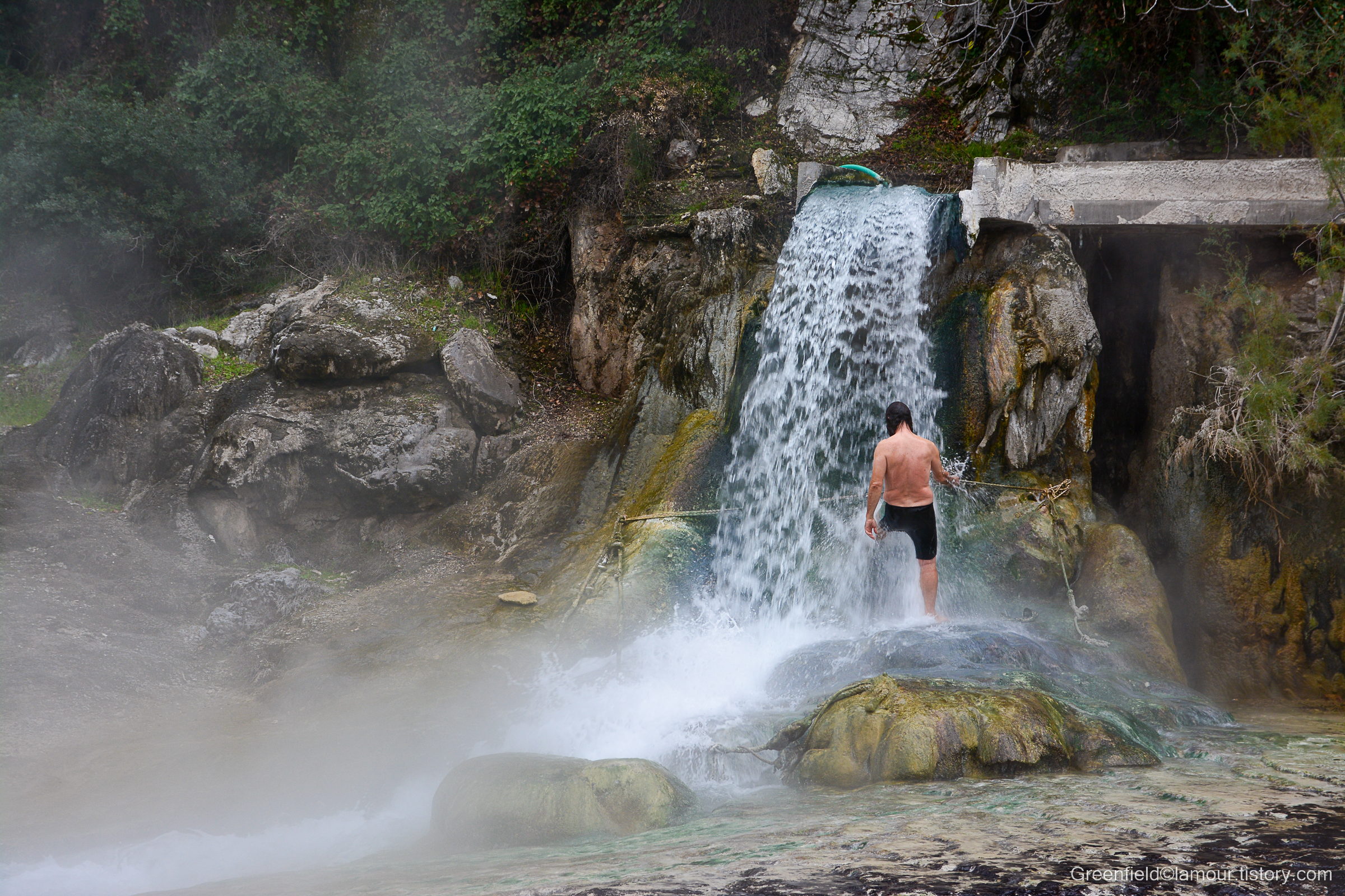 우리나라 같으면 주변에 관광호텔이 서고 유황온천탕을 만들어 큰 돈을 벌었을텐데, 이걸 그대로 노천에 놔두는 그리스 사람들은 아마도 우리처럼 목욕을 좋아하지 않는 듯 하다.
