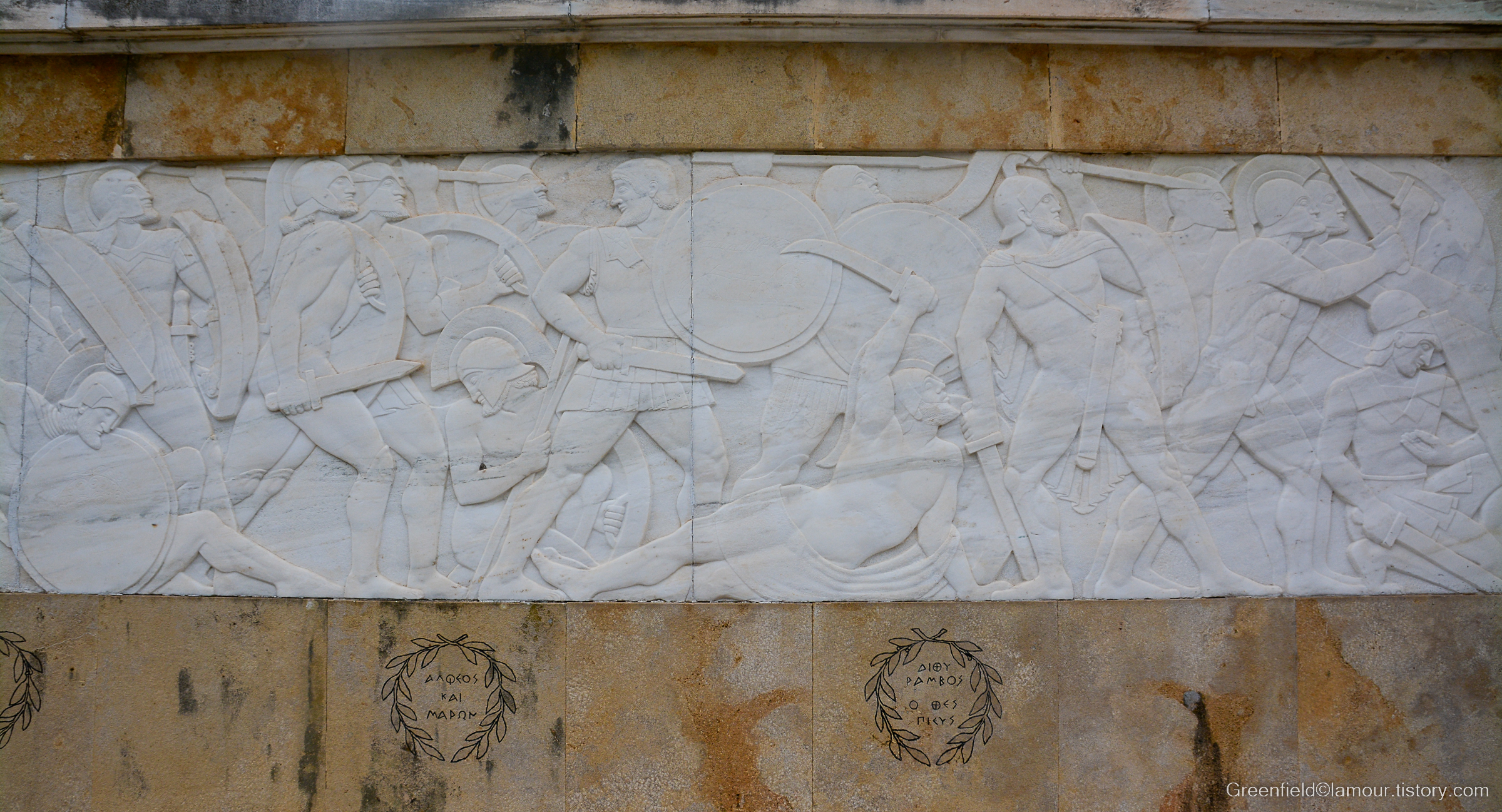 레오니다스 장군의 동상 아래에는 당시의 처절했던 전투장면을 부조로 담아놓았다.