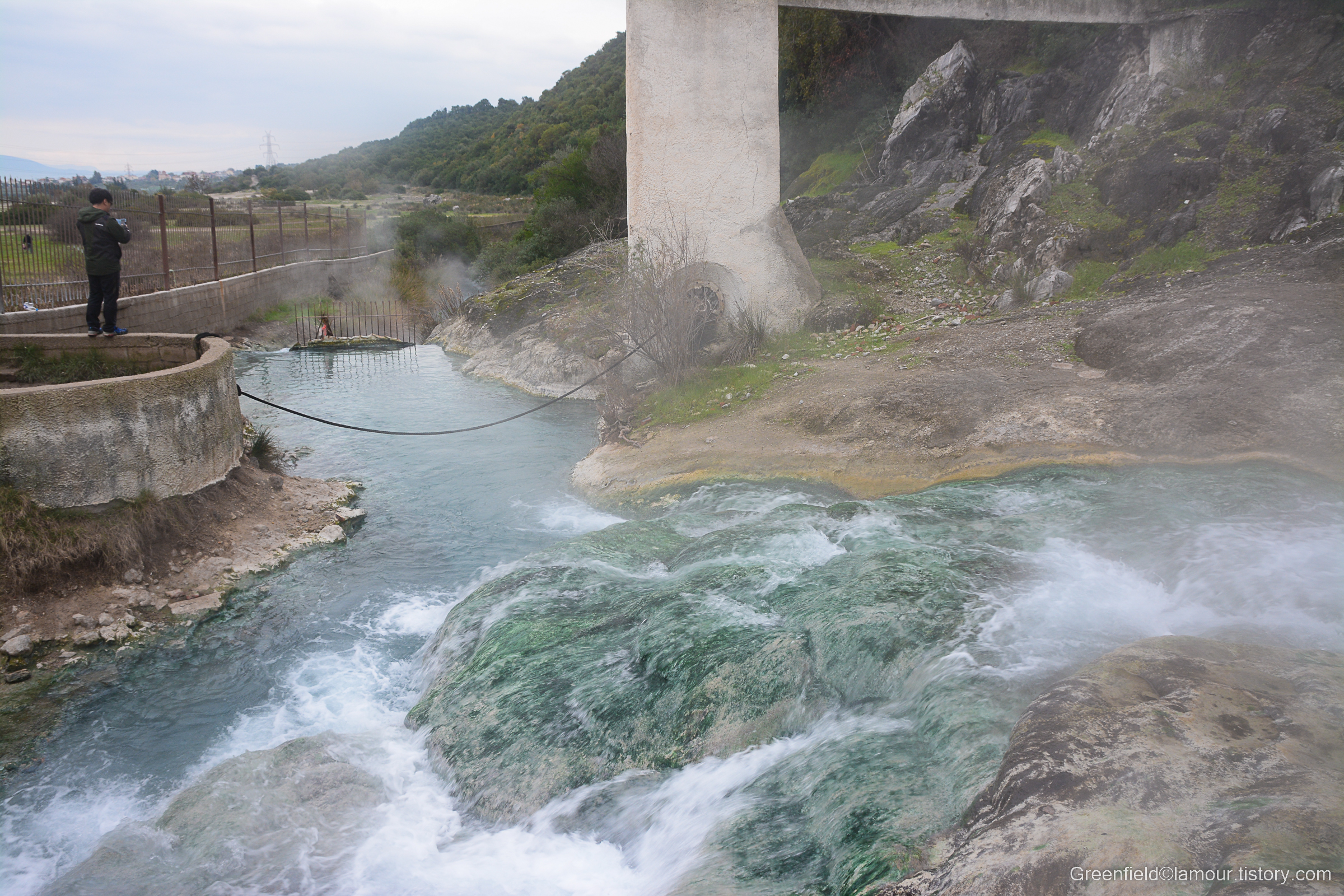 어디서 유황냄새가 진동한다 했더니 테르모필레 전투기념비 옆에는 상당히 큰 규모의 노천 유황온천이 있다. 물이 상당히 뜨거워서 잘못하다가는 살이 데일 것 같았다.