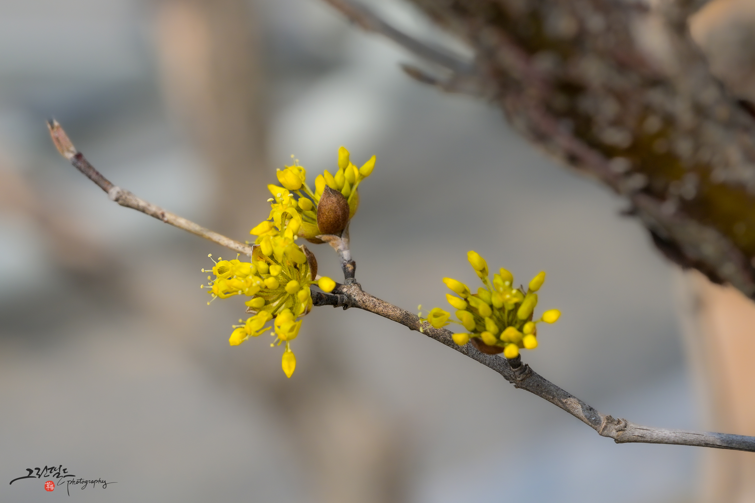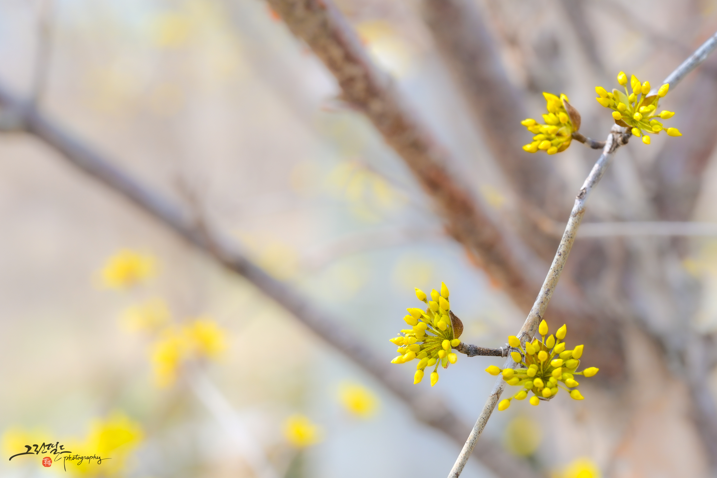 노란 산수유 꽃과