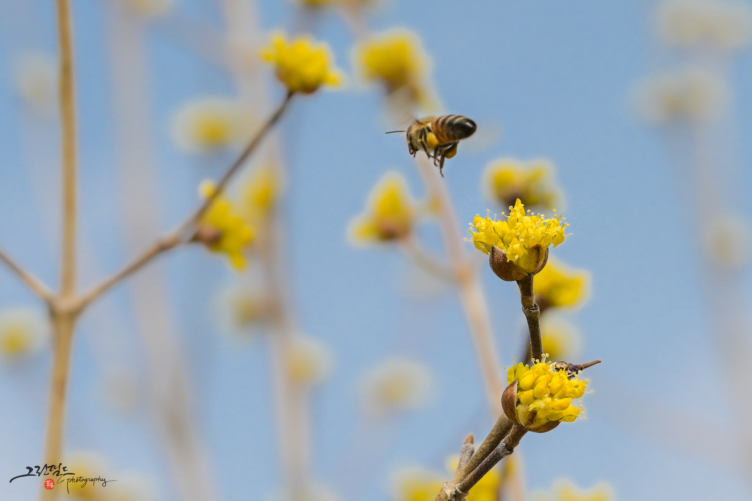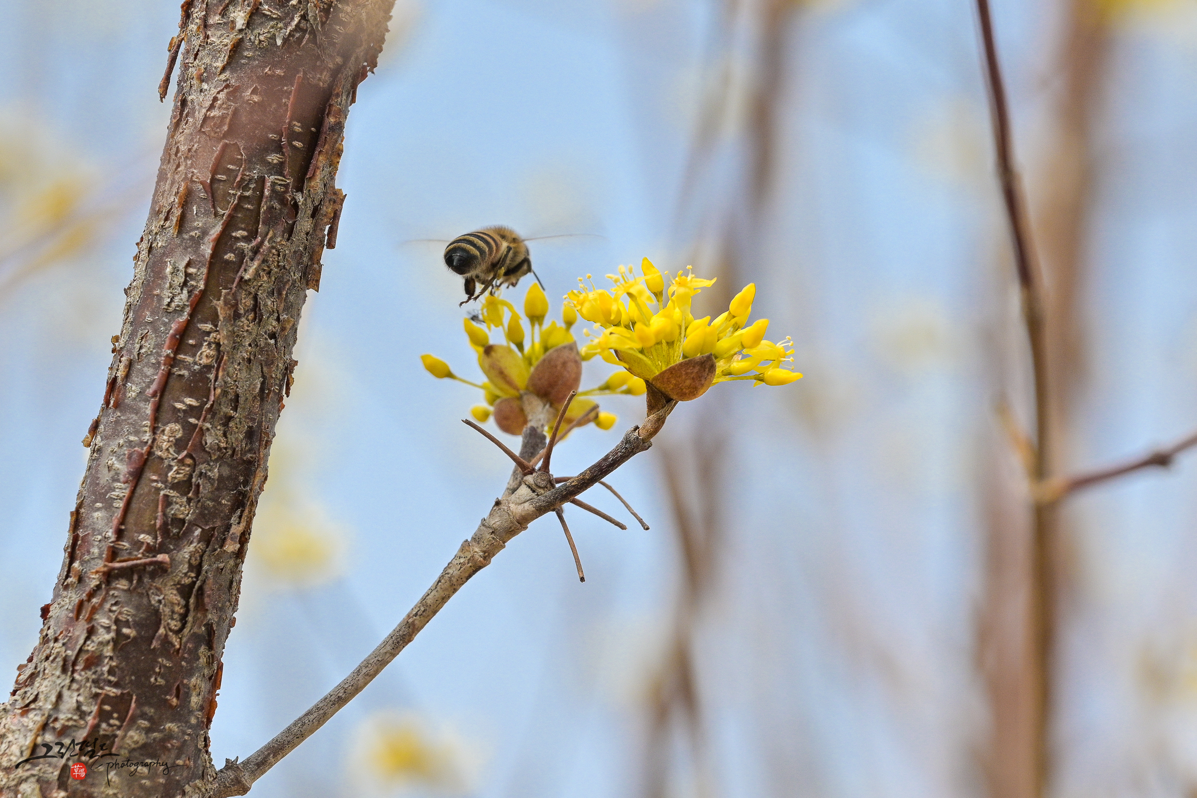 산수유와 꿀벌의 데이트,
