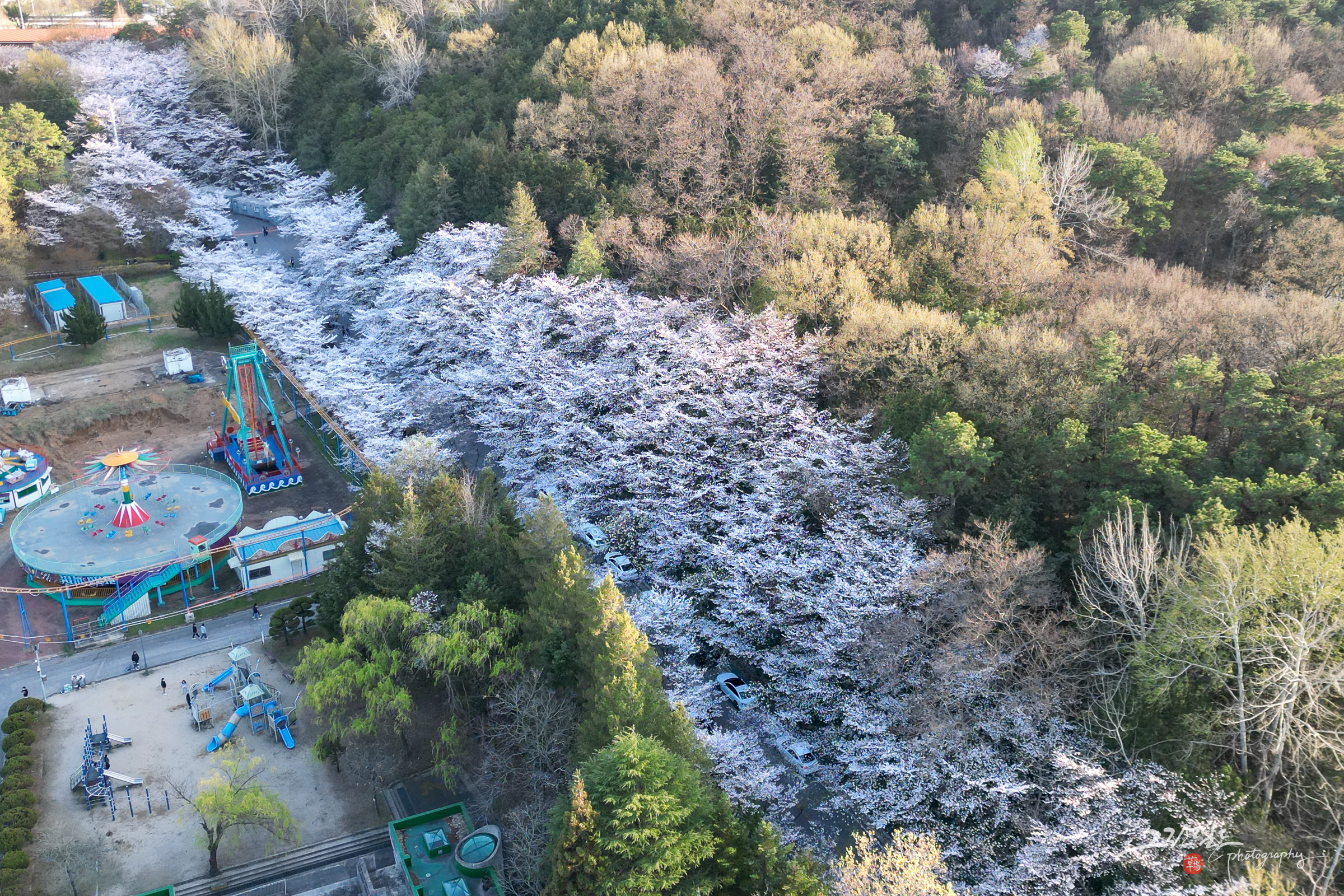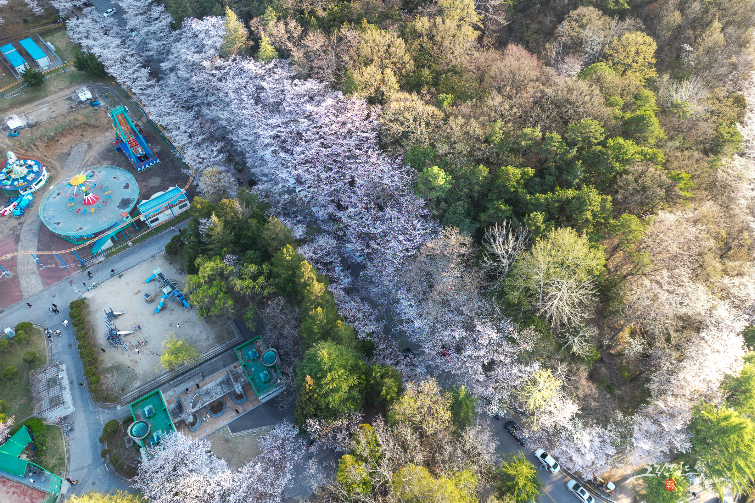 지난 주 내린 비가 그치니 광주 중외공원에 벚꽃이 활짝 피었습니다.